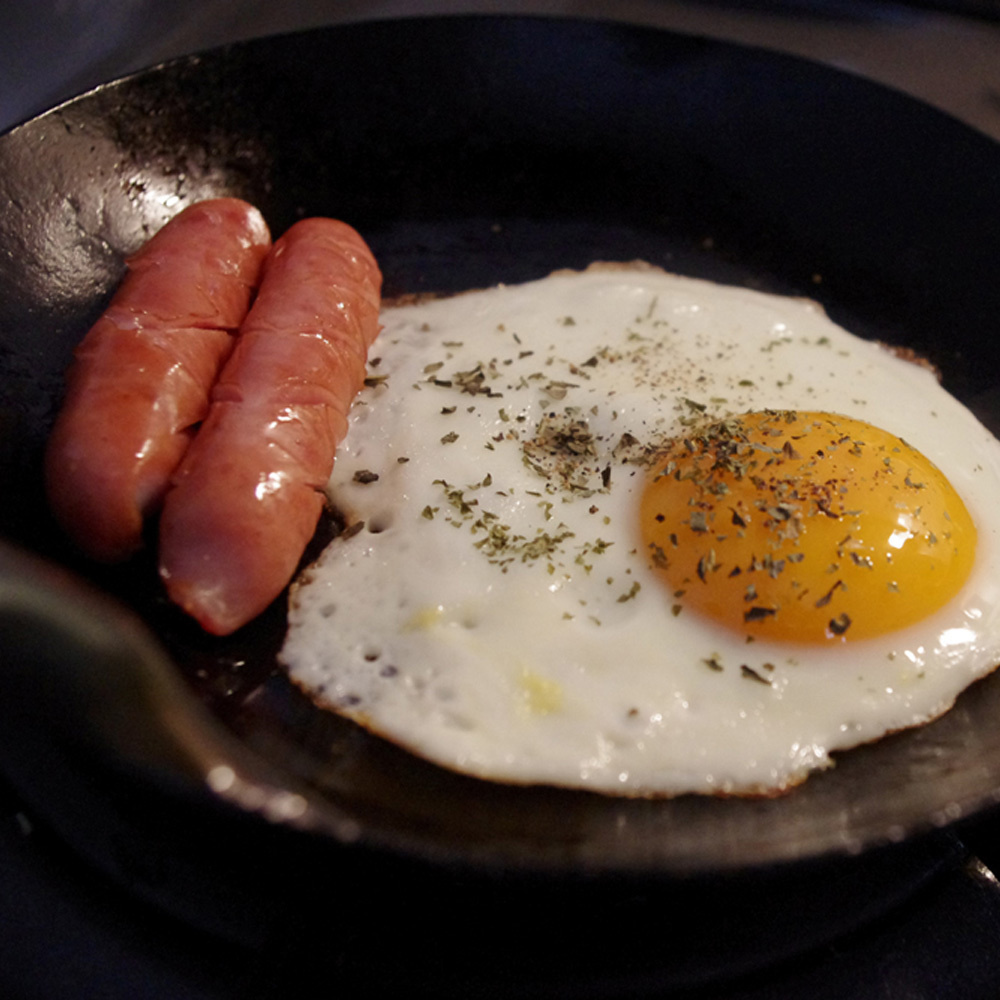 一枚の鉄板を熱し、手打ちで打ち鍛えて形作ったフライパン。一体型で壊れにくく、ずっと長く使い続けることができます。